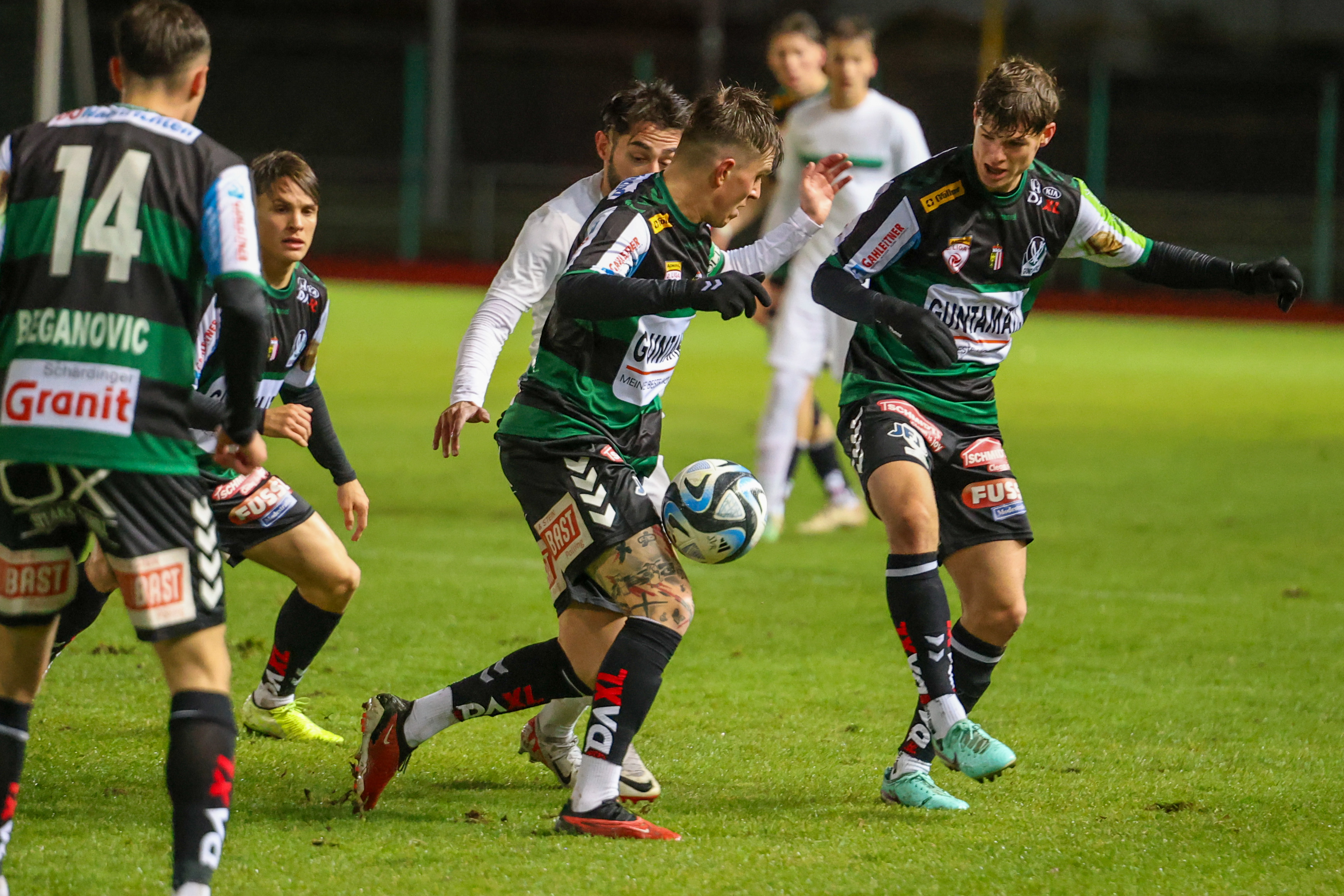 15.11.2023, AUT, Ried, SV Ried vs Wacker Innsbruck, Testspiel, Im Bild: Nik Marinsek, Fabian Rossdorfer (Ried), Fotocredit Reinhard Schröckelsberger