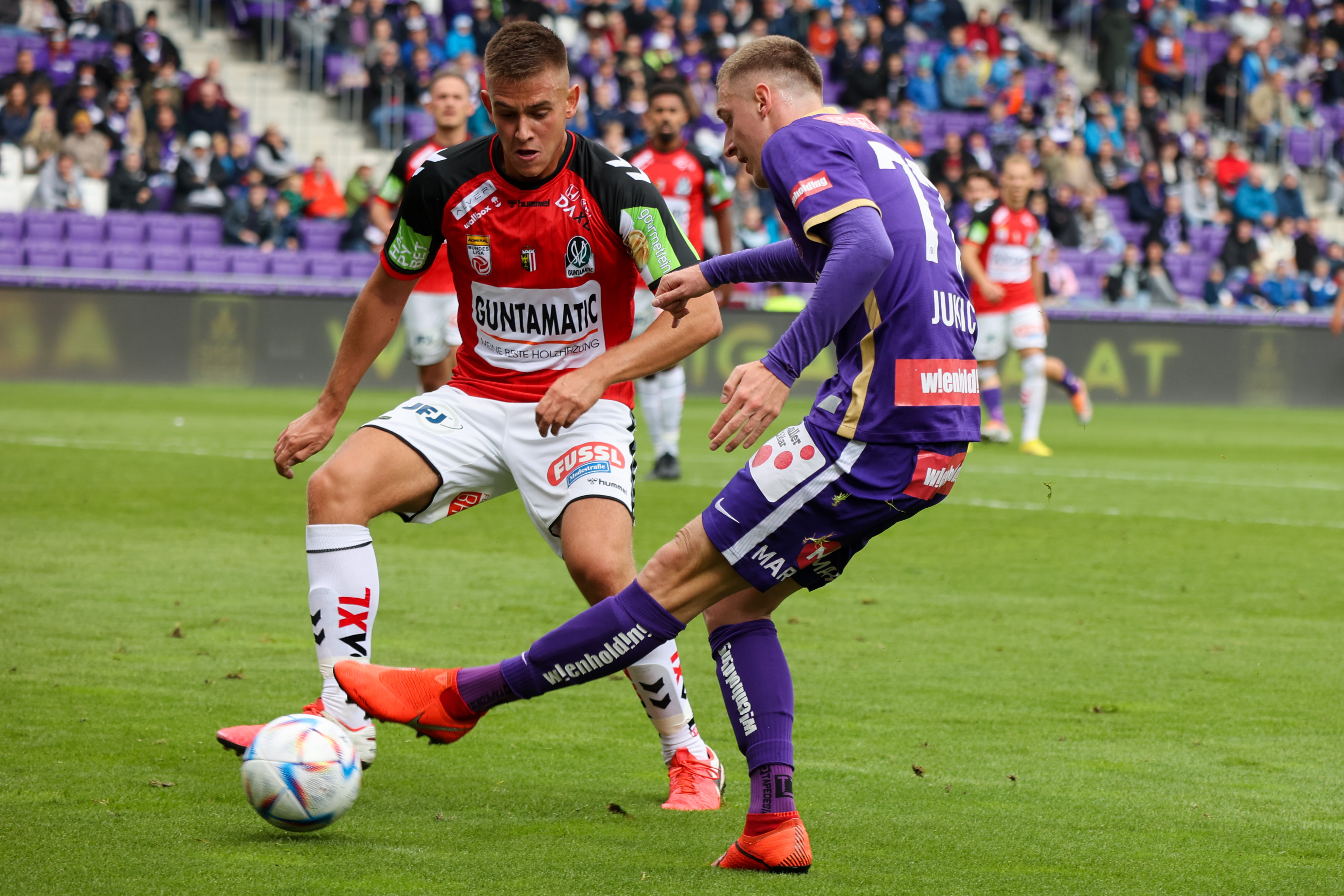 18.09.2022, AUT, Wien, Austria Wien vs SV Ried, Bundesliga Grunddurchgang, Im Bild Julian Turi (SVR), Jukic (AUS), Photocredit R.Schröckelsberger